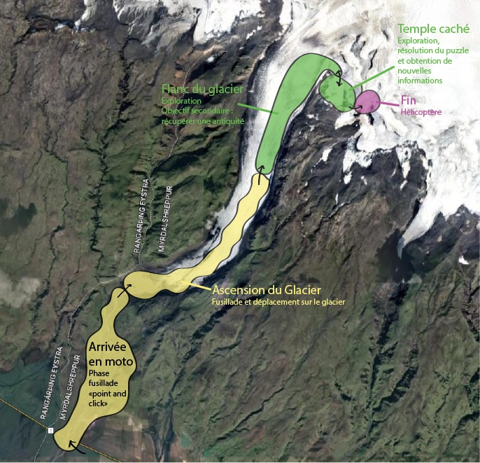 Une fois cette course poursuite terminée, le joueur passera dans une phase de fusillade durant laquelle il doit avancer sur le flanc du glacier afin de se débarrasser des criminels et de les devancer pour obtenir la relique sacrée.