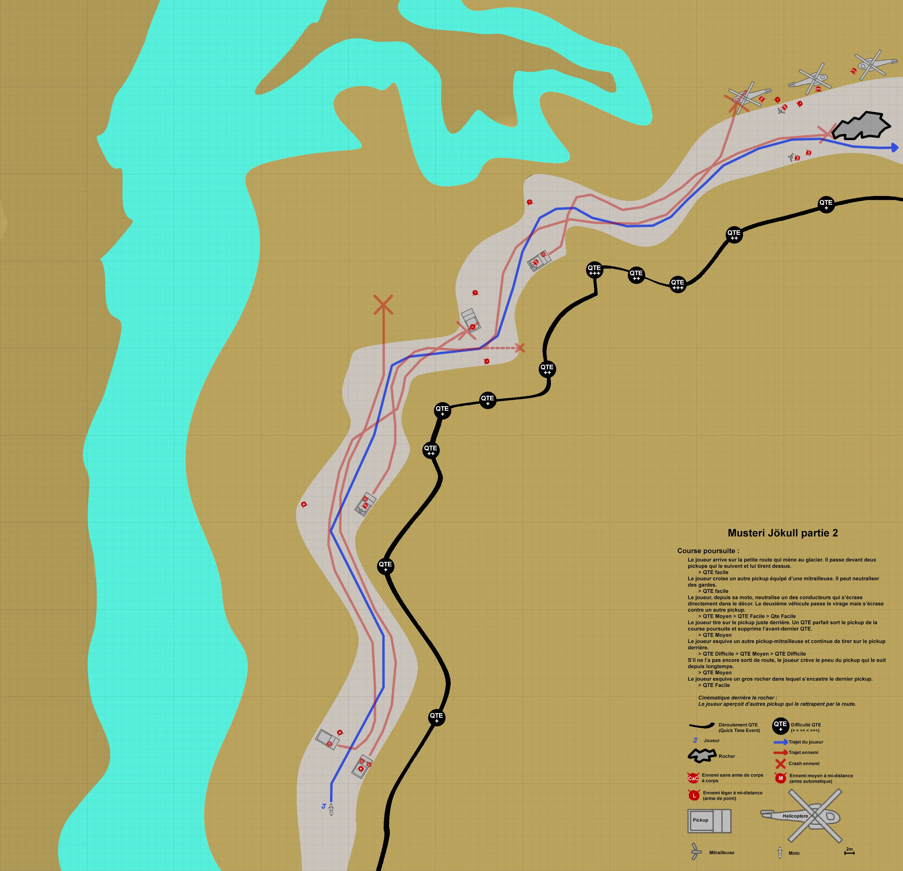Une fois ces données récupérées, le joueur fuira la base ennemie et partira en moto (cutscene). En arrivant à proximité du glacier sur lequel la relique se trouve, le joueur affrontera des criminels depuis sa moto lors d'une phase de QTE.