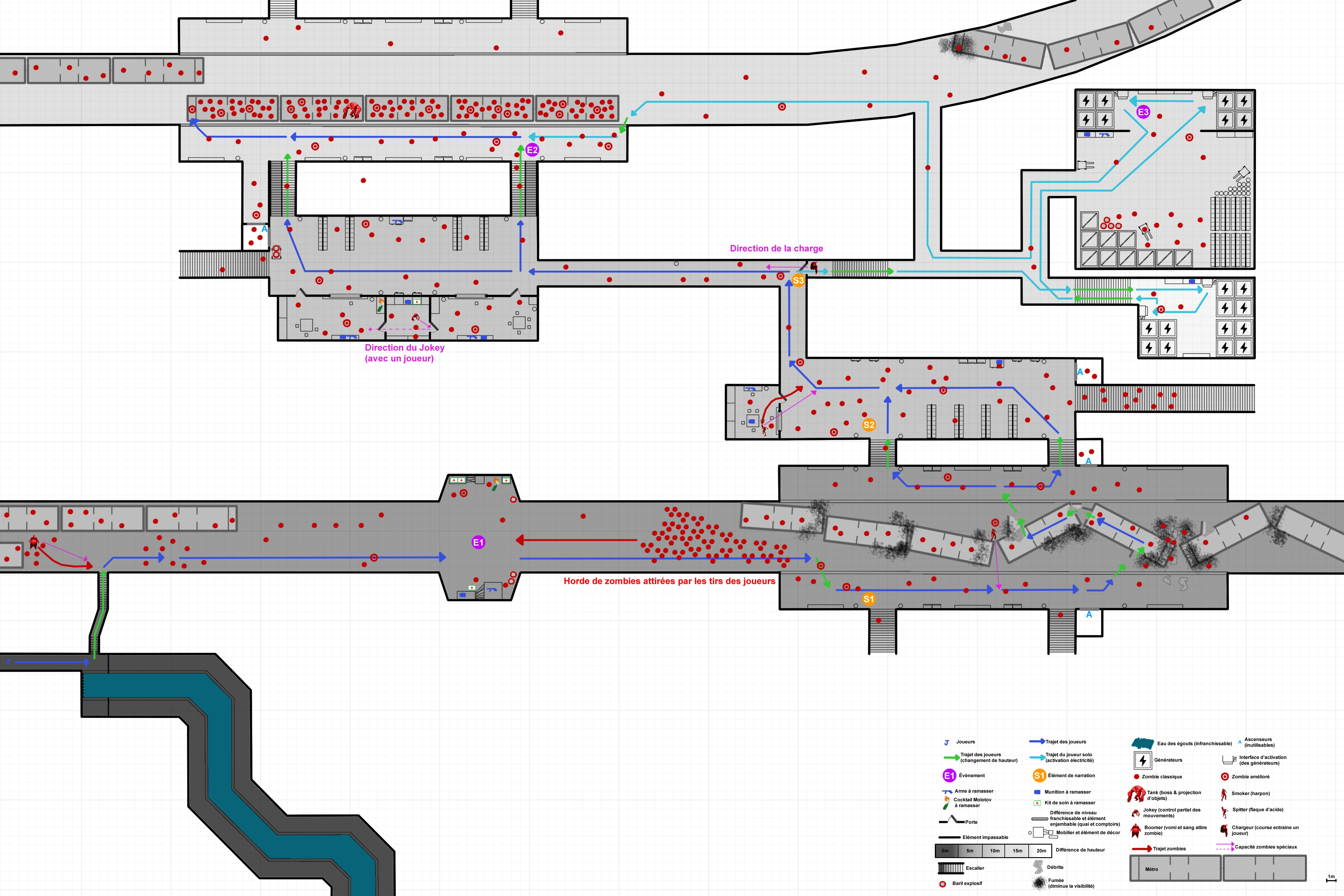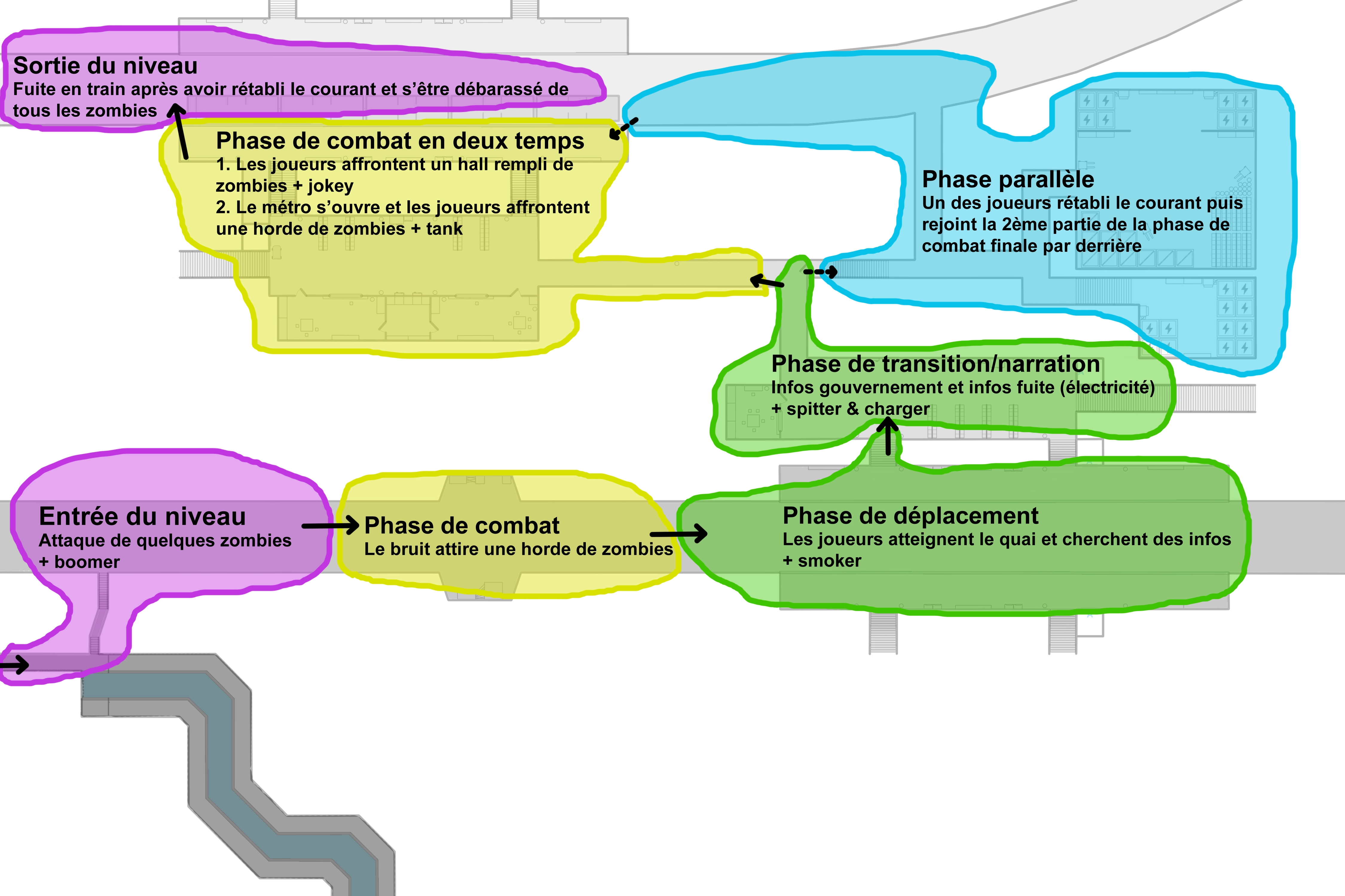 Dans mon niveau, les joueurs atteignent le réseau de métro de la ville dans l'espoir de fuir l'apocalypse zombie grandissante.