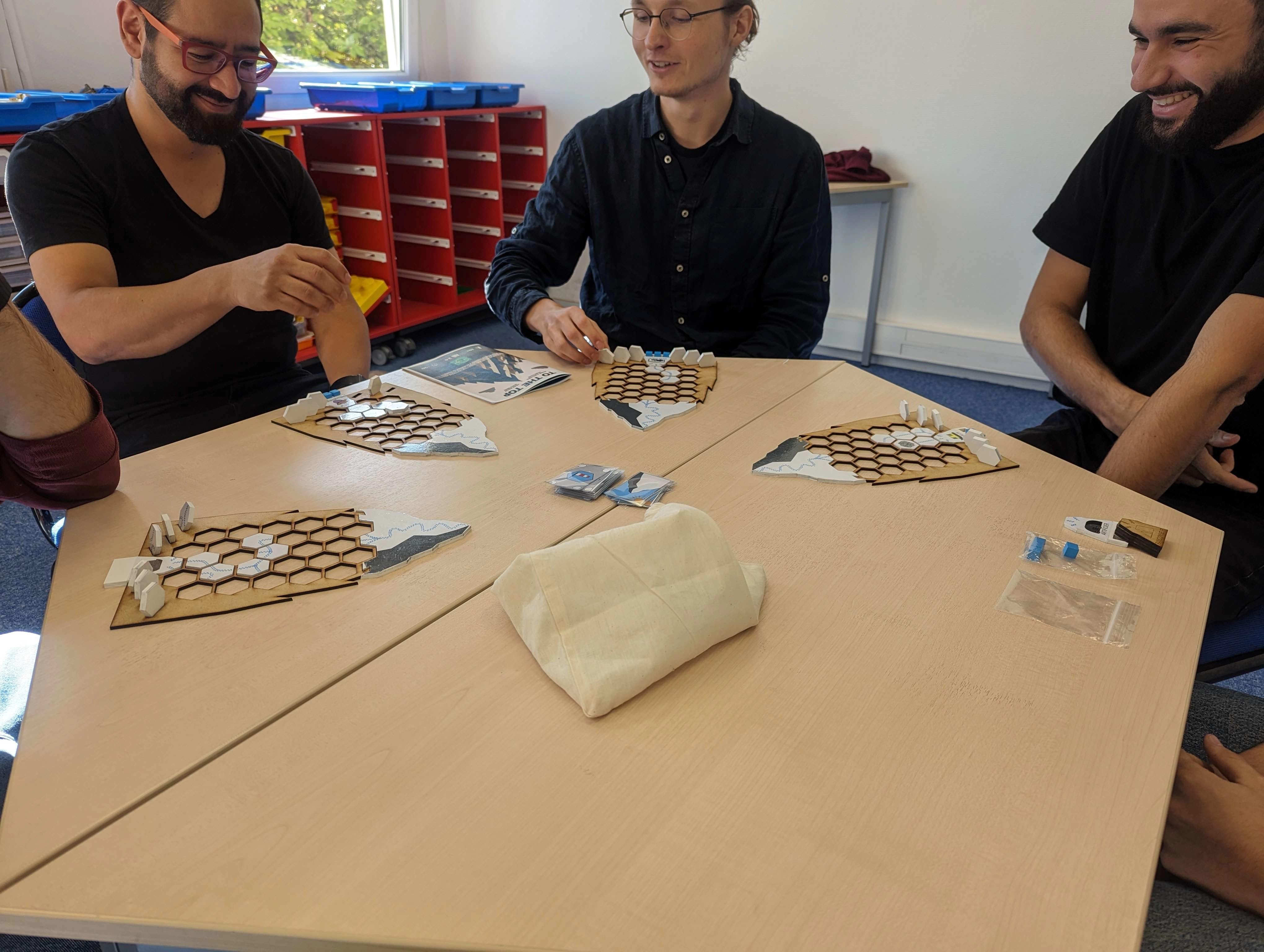 A l'aide de la découpeuse laser du LudoMaker, nous avons découpé chaque plateau et chaque tuiles, nous les avons ensuite recouverts avec les autocollants que nous avons créés.
